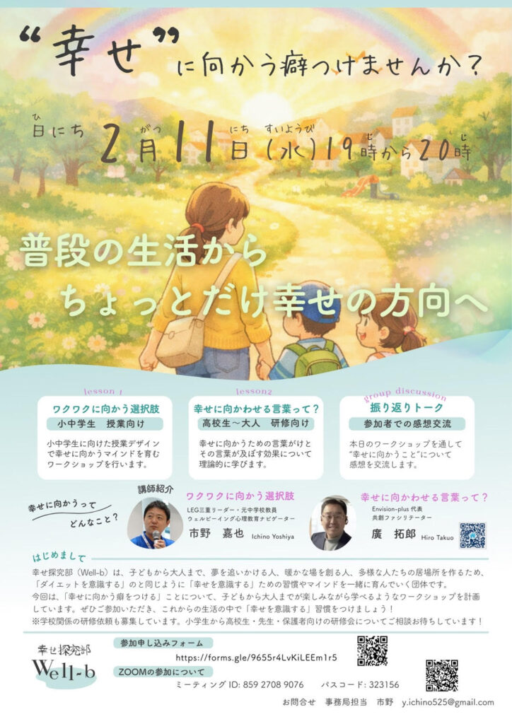この度、市野さんと一緒に『幸せ探究部(Well-b)』を開設しました。
